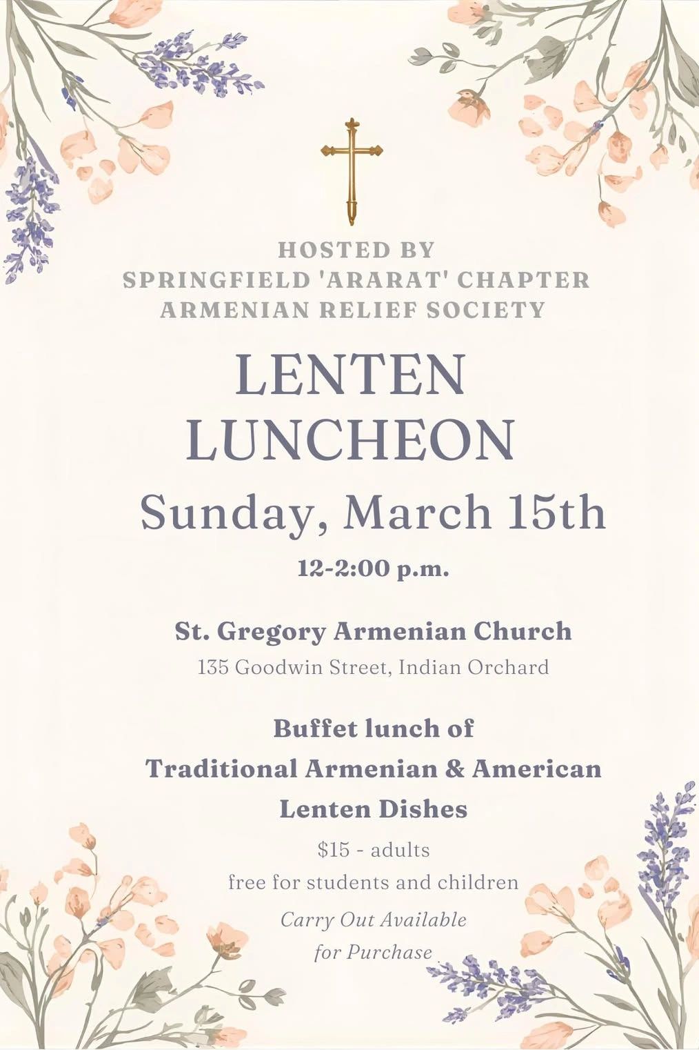 Buffet lunch of Traditional Armenian & American Lenten Dishes.